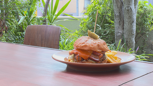 素敵なテラス席で素材にこだわった絶品ハンバーガーをいただきます。
